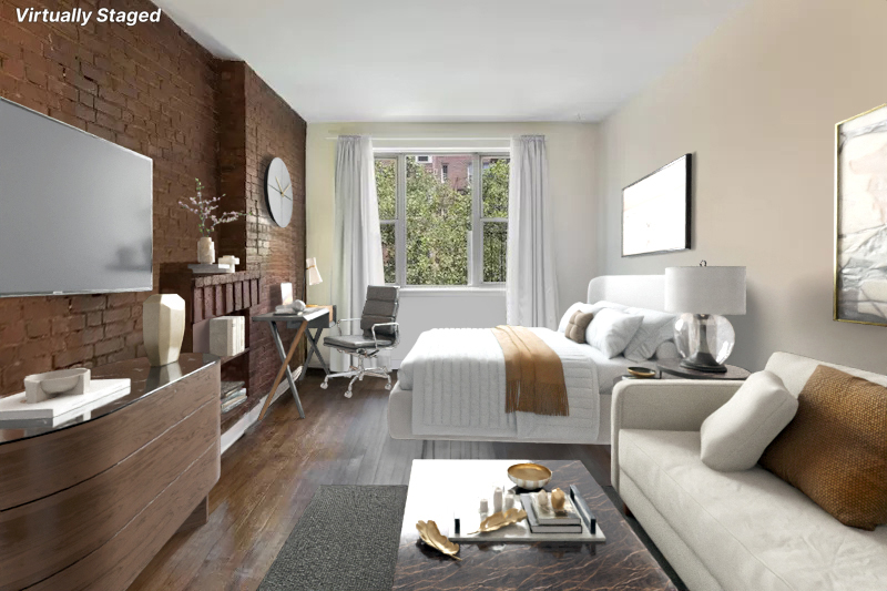 This bright, newly updated, prewar studio overlooks peaceful 77th Street and treetops. The apartment boasts exposed brick, high ceilings, newly sanded and refinished hardwood floors, a decorative fireplace, through wall a/c and plenty of closet space. There is a separate renovated kitchen with quartz countertops, mosaic tile, new appliances and a brand-new bathroom. Located in the heart of the Upper East Side with close proximity to museums, art galleries, top restaurants and Central Park, 77 Settler Corp. has a flexible sublet policy and is a well kept, 16 unit cooperative. 4A is a short three flights up from ground level.
