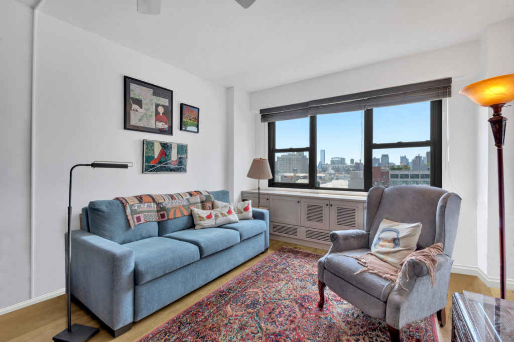 High floor plus sized studio. This is a newly renovated flexible living space studio, features beautiful new flooring throughout, custom built heating coverings that also provides extra hidden storage under the sun filled southern facing windows. Newley upgraded kitchen. Features stainless steal appliances and ample custom sized cabinetry. Standard bathroom with tub/shower and pedestal sink.